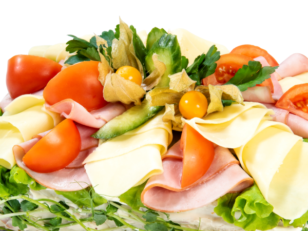 Smörgåstårta fylld med vår klassiska Legym- och Skinkfyllning, mild i smaken omtyckt av de flesta. Garnerad med ost, skinka, physalis, gurka, tomat, salladsblad, citron, bladpersilja och ärtskott. Alternativet för dig som inte önskar skaldjur. Våra höga och fina smörgåstårtor med Ost och Skinka går att få i upp till 18 bitar och är gjorda så att de är lätta att skära. Vi beräknar cirka 300 gram per bit.
